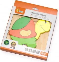 Poboljšajte vještine svog djeteta ovim simpatičnim drvenim puzzleom. Dizajnirano u obliku kornjače s jasno zelenim i narančastim elementima, ovaj proizvod potiče kreativno slaganje i maštu. Igračka je smještena na četvrtastoj osnovi i odličan je alat za razvoj koordinacije ruku i očiju.
