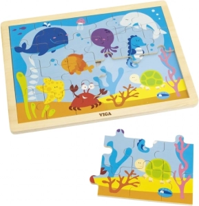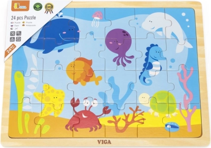 Vesela drvena puzzle s motivom podmorskog svijeta predstavlja idealnu zabavu za djecu. Složite 24 dijela kako biste razvijali kognitivne i motoričke vještine.