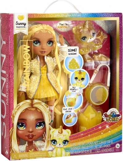 Lutka Sunny Madison iz serije Rainbow High dolazi u sunčano žutom outfitu sa sjajnim detaljima, modernim platformama i torbicom. U pakiranju se nalazi i preslatki ljubimac s jednorogovim rogom te porcija zabavnog slimea koji možete rastezati, oblikovati i kreativno koristiti.