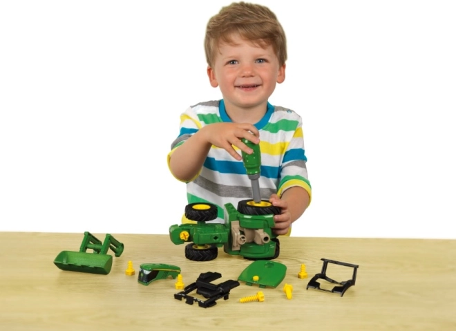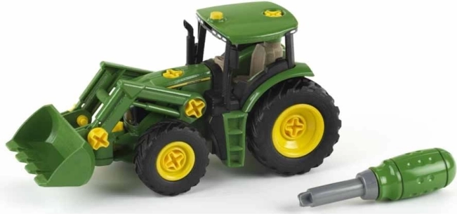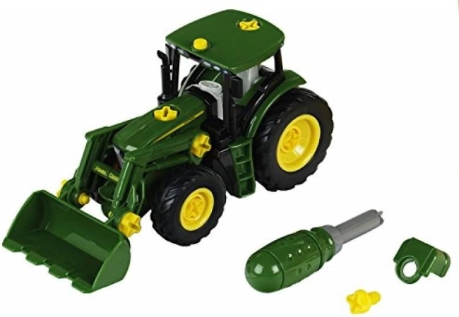 Ovaj zeleno-žuti traktor s prednjim utovarivačem razveselit će male graditelje mogućnošću rastavljanja i ponovnog sastavljanja pomoću priloženog odvijača. Djeca lako vježbaju logiku, strpljenje i preciznost pri rukovanju dijelovima, kotačima i vijcima.