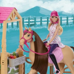 Uključuje lutku Barbie u jahačkoj odjeći, konja s realističnim detaljima i dugom mekom grivom, štalu s nadstrešnicom i bogat set dodataka za maštovitu igru. Set je idealan za djecu od 3 godine naviše koja vole konje, brigu o životinjama i pripovijedanje vlastitih priča.