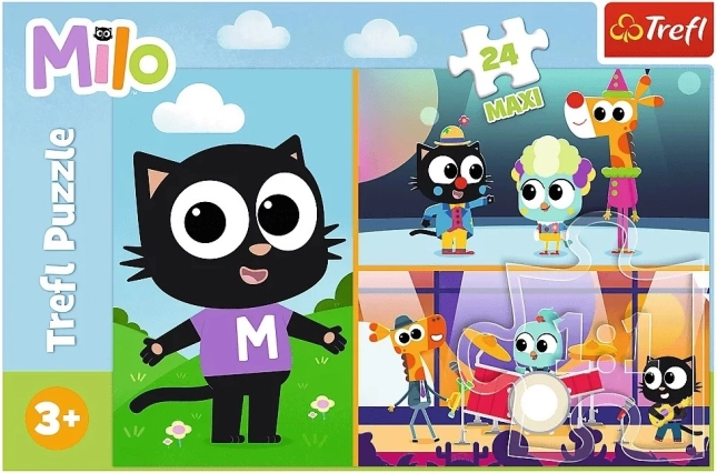 Ove dječje puzzle s motivom omiljenog mačića Mila izvrstan su izbor za prve puzzle. 24 ekstra velika dijela lako drže i najmlađa djeca, razvijaju finu motoriku, strpljenje i logičko mišljenje. Nakon slaganja nastaje velika, šarena slika dimenzija 60 × 40 cm koju će djeca obožavati.