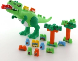 Otkrijte zabavu i učenje s ovim jedinstvenim građevinskim setom dinosaurusa. Set uključuje 30 kockica s raznim otiscima, koje omogućuju djeci da razvijaju koordinaciju ruku i očiju, preciznost i maštovitost. Dinosaur ne samo da jede kockice, već zahvaljujući svojim pokretnim udovima i otvorenom čeljusti djeluje realistično.