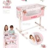 Slatka novorođenačka kolijevka za lutke iz serije KOALA donosi funkciju zajedničkog spavanja, tako da lutka može biti sigurno i udobno odmah pokraj “mame”. Ima preklopnu bočnu stranicu s mrežicom za bolji nadzor, podesivu visinu u 3 razine i pomične noge za lako približavanje krevetu. Laka, stabilna i s nježnim cvjetnim dizajnom u ružičasto-bijeloj izvedbi.
