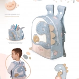 Dominantna slika mame dinosaura s mladunčetom na nježno plavoj pozadini čini ruksak omiljenim pratiteljem za vrtić i izlete.