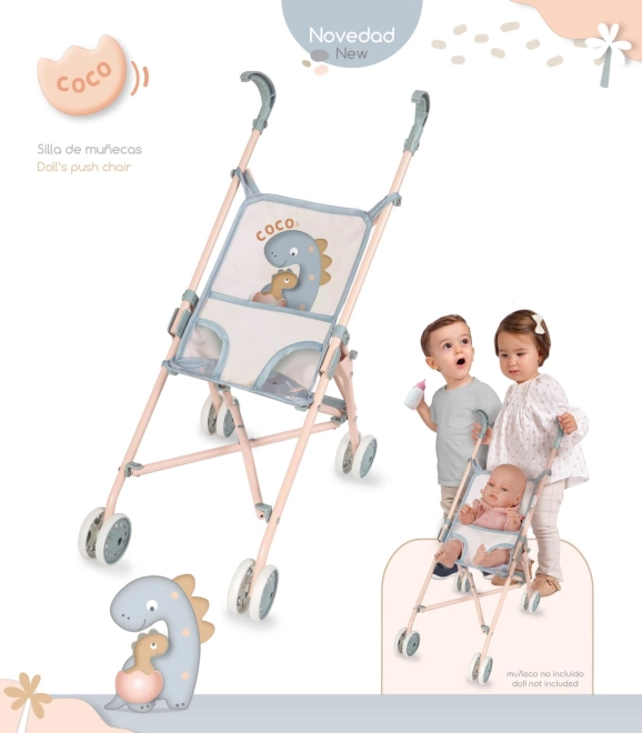 Razigrana kolica za lutke s motivom preslatkog dinosaura iz kolekcije COCO ističu se malom težinom i kompaktnim dimenzijama, pa se lako prenose i spremaju. Zahvaljujući visini ručke od 56 cm, jednostavna su za upravljanje manjim mališanima i sjajan su pratitelj za svakodnevnu igru.