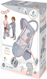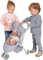 Okretljivo prednje dvostruko kolo olakšava skretanje, donja košara nudi praktičan prostor za odlaganje, a trotočkovni pojas sigurno učvršćuje lutku do veličine 46 cm. Kompaktne dimenzije 55 × 48 × 33 cm (v × d × š) omogućuju lako prenošenje i spremanje.
