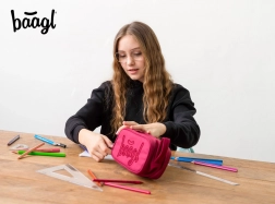 Studentski pernica Baagl Ruby nudi tri odvojena pretinca s kvalitetnim YKK patentnim zatvaračima i praktičnom petljom za lako vješanje.