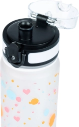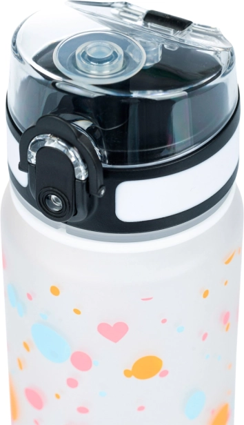 Stilna tritanska boca zapremnine 500 ml s motivom srčeka idealna je za školu, sport i izlete. Nudi nepropusni zaključavajući poklopac, praktičnu trakicu za nošenje i unutarnje sito za voće ili čaj. Izrađena od sigurnog tritana bez BPA, bez neugodnih mirisa i pogodna i za vruće napitke.