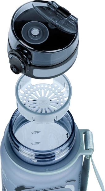 Opremljena je praktičnim zaključenim poklopcem i sitom, što omogućuje korištenje za razne vrste napitaka, uključujući voćne limunade ili čajeve. Zahvaljujući priloženom remenu, nošenje boce je vrlo jednostavno. Boca aktivno doprinosi zaštiti okoliša smanjenjem plastičnog otpada.