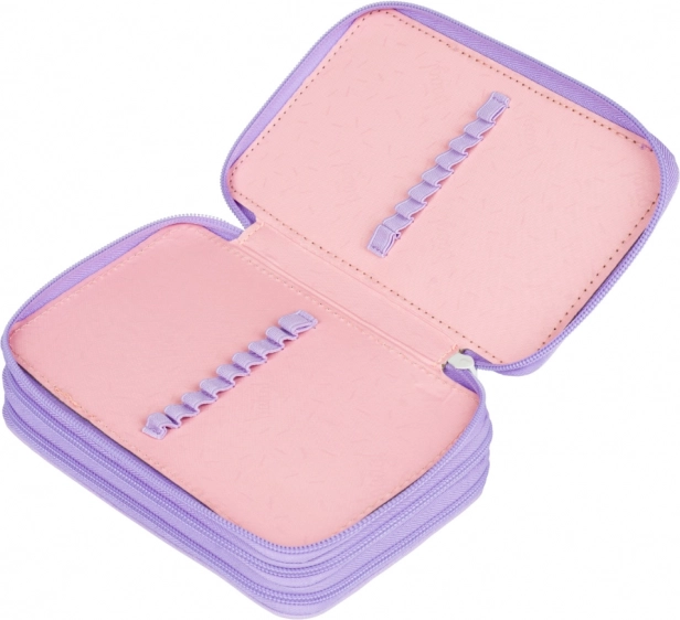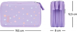 Promišljene gumice dizajnirane su tako da udobno prime i deblje bojice i flomastere. Pernica je izrađena od izdržljivog tekstilnog materijala, a razigrani dizajn s točkicama u ljubičastim tonovima izvrsno nadopunjuje svaki školski set. Isporučuje se bez punjenja, pa je možete prilagoditi točno po svojoj mjeri.