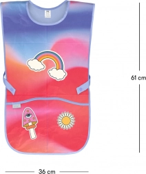 Praktični detalji, poput dvaju prostranih džepova, podesive naramenice oko vrata i vezanja u struku, osiguravaju udobno nošenje. Perivi materijal lako se čisti nakon svake pustolovine s bojama ili tijestom.
