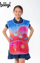 Otkrijte pouzdanu zaštitu odjeće za male stvaratelje. Dječja pregača BAAGL s motivom duge u crvenoj varijanti idealna je za školu i dom – za likovni odgoj, radne aktivnosti, pečenje i kreativne radionice. Zaigran dizajn djecu veseli i poziva na stvaranje.