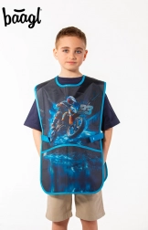 Stilska dječja pregača BAAGL s akcijskim motivom motocikla štiti odjeću pri stvaranju i kuhanju. Ima periv materijal, 2 praktična džepa i podesive remene za udobno nošenje. Idealna za likovni odgoj, radne aktivnosti i kružke slobodnih aktivnosti.