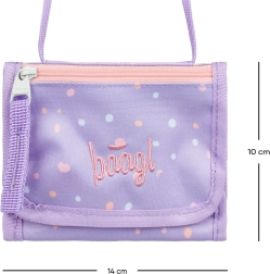 Promišljena organizacija sa zatvaranjem na čičak i unutarnjim džepičićem na patent za kovanice drži gotovinu, kartice i ključeve pregledno i sigurno. Stilski ljubičasti dizajn s točkicama i decentnim logotipom daje novčaniku moderan izgled koji se odlično uklapa s školskom i slobodnovremenskom opremom.