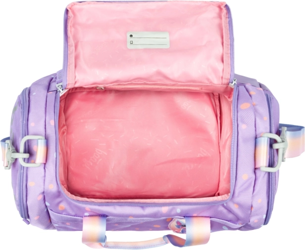 Odvojivi crossbody remen lako prilagodite visini djeteta. Torba se može nositi preko ramena ili u ruci zahvaljujući čvrstim ručkama.