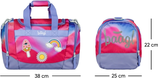 Lagana i stilska dječja sportska torba BAAGL s motivom duge idealna je za aktivnosti, tjelesni i kao ručna prtljaga. Nudi prostranu glavnu komoru sa širokim poklopcem, odvojeni pretinac za obuću, odvojivi podesivi remen i ojačano vodootporno dno. Za glatko otvaranje brinu pouzdani YKK patentni zatvarači, a tu su i reflektirajući detalji za sigurnost.