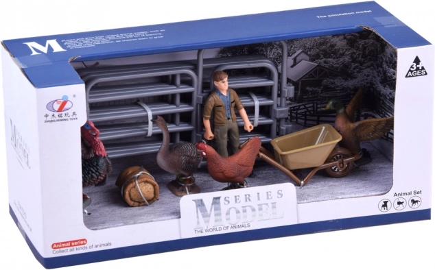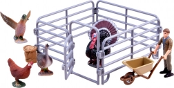 Dio pakiranja su puran, pijetao, guska, patka, farmer s kolicima, hranilica i elementi ograde, zahvaljujući kojima djeca lako stvaraju vlastitu mini farmu te mogu odigravati svakodnevne aktivnosti, hranjenje i brigu o životinjama.