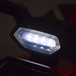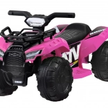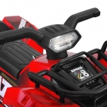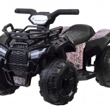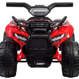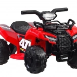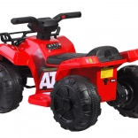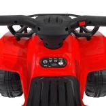 Kompaktni dječji četverocikl na baterije nudi jednostavno upravljanje za najmlađe vozače. Zahvaljujući maloj težini i dimenzijama idealan je za stan i nogostupe. Opremljen je 6 V motorom, 6 V 4,5 Ah akumulatorom, vožnjom naprijed, profiliranim sjedalom i osloncima za noge. Pokretanje se obavlja pritiskom crvene tipke na ručki, a tu su i zvučni efekti i truba.