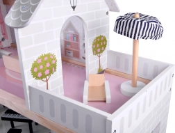 Kućica je opremljena LED trakom za ugodno ambijentalno svjetlo u svakoj prostoriji. Otvorena konstrukcija, prozori i dekorirana fasada s cvijećem i lampama daju realističan dojam. U pakiranju je širok izbor drvenog namještaja: od blagovaonskog stola, foteljica i sofe, preko kupaoničke opreme, pa sve do crnog klavira s tabureom i ležaljke sa suncobranom za terasu.