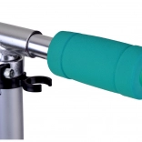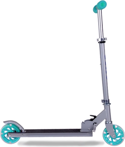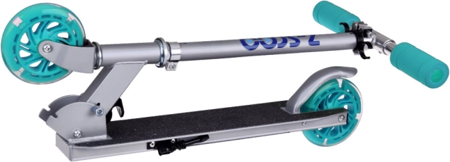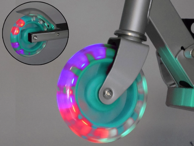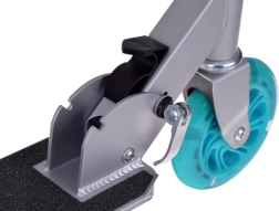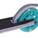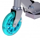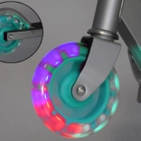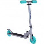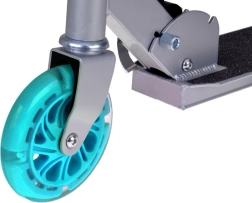Ovaj sklopivi dječji romobil kombinira malu težinu, čvrstu metalnu konstrukciju i razigran dizajn s tirkiznim detaljima. Zahvaljujući LED kotačima koji svijetle tijekom vožnje i ne zahtijevaju baterije, dijete je bolje vidljivo, a svaka vožnja je zabavnija.
