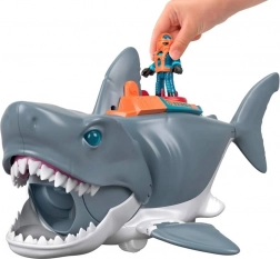 Krenite u uzbudljivu podvodnu avanturu s Megom napadajućim morskim psom Imaginext. Ova velika zvijer može progutati ronioce u trenu! Zahvaljujući realističnim pokretima plivanja i klopajućoj čeljusti, igra s njim je zaista interaktivna. Morski pas 'proždire' ronioce koje zatim možete lako izvući kroz stražnji otvor igračke.
