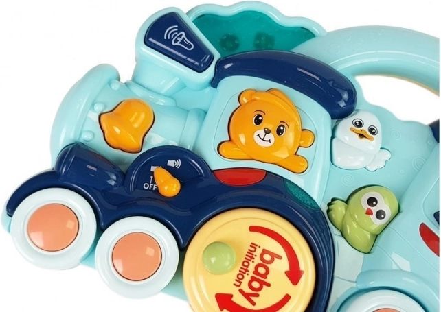 Lokomotiva je izrađena u ugodnim nijansama plave, nudi svjetlosne efekte i dvije razine glasnoće za ugodnu upotrebu kod kuće i na putu. Zahvaljujući pokretnim kotačićima lako se kotrlja po podu i potiče djecu na aktivnu igru.