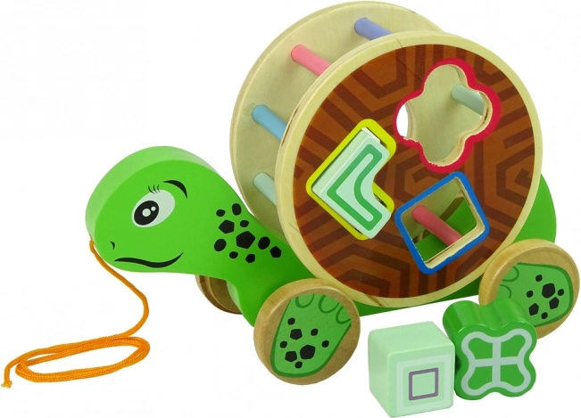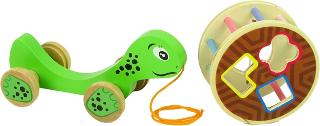 Drvena vučna kornjača sa sorterom pametna je igračka za najmlađe koja spaja kretanje, razvoj fine motorike i učenje oblika. Šareni rotirajući bubanj sa sorterom i 3 kocke potiču logiku i koordinaciju oko–ruka, dok uže i kotačići mame na aktivnu igru. Izrađeno od kvalitetnog drva i sigurno lakirano.