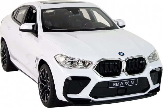 Ovaj licencirani model BMW X6 M u snježno bijeloj boji ističe se vjernom izradom karoserije, tamno zatamnjenim staklima i svjetlosnim efektima za još autentičniju vožnju i pri sumraku. Zahvaljujući gumenim gumama savladava glatke podove i manje ravne površine te nudi glatko upravljanje naprijed/natrag i lijevo/desno.