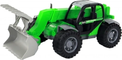 Robustan zeleni dječji traktor s izvlačivom rukom i trima izmjenjivim nastavcima nudi realističnu igru u kući i na otvorenom. Zahvaljujući frikcijskom pogonu, velikim kotačima i prozirnoj kabini razvija motoriku i maštu. U paketu su vilice, košara i hvataljka za drvo za razne vrste utovara i prijevoza.