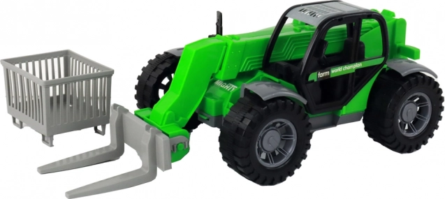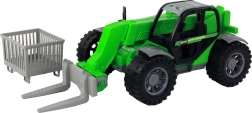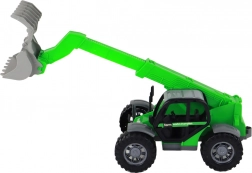 U pakiranju se nalaze tri lako izmjenjiva nastavka: vilice za bale i materijal, transportna košara i hvataljka za drvo ili grane. Frikcijski pogon omogućuje jednostavno pokretanje – samo lagano pogurnite i krenite. Igra s građevinskom i poljoprivrednom tehnikom potiče finu motoriku, koordinaciju i kreativno razmišljanje.