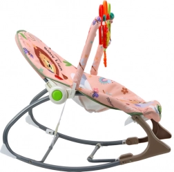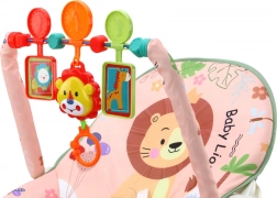 Kolijevka je dizajnirana s ugodnom ružičastom tkaninom, koja je ukrašena motivom simpatičnog lava i šarenih cvjetova. Dio kolijevke je šarena igračka na luku, koja uključuje viseće životinjice poput lava i žirafe te potiče interakciju djeteta.