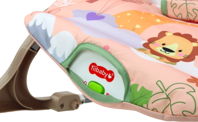 Kolijevka je opremljena ružičastom tekstilnom navlakom s motivom lava i šarenim cvjetnim uzorcima, koji privlače pažnju svake bebe.
