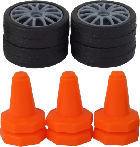Glatke gume za efektne proklize i kotači s gaznim slojem za stabilnost. Čunjevi u pakiranju omogućuju vam postavljanje vježbovnih staza.