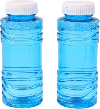 Set uključuje 2 plave bočice s otopinom za mjehuriće za dugu i neprekidnu zabavu.