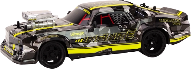 Stilski RC auto u mjerilu 1:16 oduševit će sve ljubitelje brze vožnje. Crni sportski dizajn sa žutim akcentima i gumeni kotači s visokim prianjanjem osiguravaju siguran grip na glatkim podlogama i zahtjevnijem terenu. Zahvaljujući preciznom 2.4G upravljanju savladava punu paletu pokreta i efektne driftove. Napajanje 4× AA za dugu zabavu, upravljač zahtijeva 2× AA.