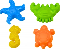 Četiri kalupa u obliku morskih stvorenja omogućuju djeci izradu raznolikih pješčanih skulptura i istovremeno učenje o morskom svijetu.