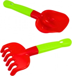 Set uključuje lopaticu i grabljice, koje potiču tjelesnu aktivnost i finu motoriku djece tijekom igre u pijesku ili zemlji.