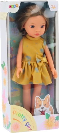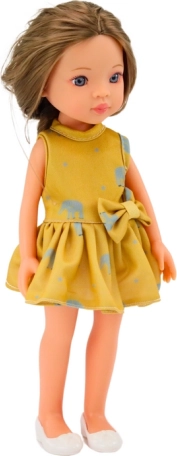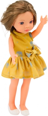 Slatka lutka visine 33 cm idealna je za svakodnevnu zabavu. Ima lagani make-up, odjevena u žutu haljinu s uzorkom slonova i bijelim cipelama. Elegantna frizura potiče kreativnost djece.