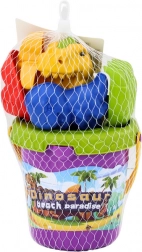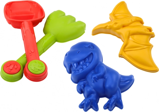 Lopatica, grablje i 2 kalupa dinosaura potiču dječju maštu i zabavu. Djeca mogu stvarati figurice, staze i dvorce te razvijati spretnost kroz igru.