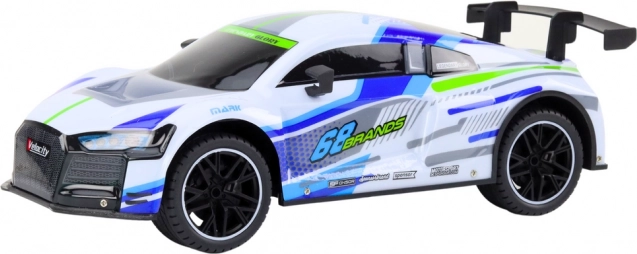 Doživite adrenalin s daljinski upravljanim modelom u omjeru 1:10 koji postiže do 25 km/h. Elegantna bijela izvedba s plavo‑zelenim akcentima, LED svjetla za vožnju i nakon sumraka, 2.4G daljinsko upravljanje za stabilan domet i brzu reakciju, gumene gume i amortizeri za bolju trakciju i kontrolu – idealno za djecu i odrasle entuzijaste.