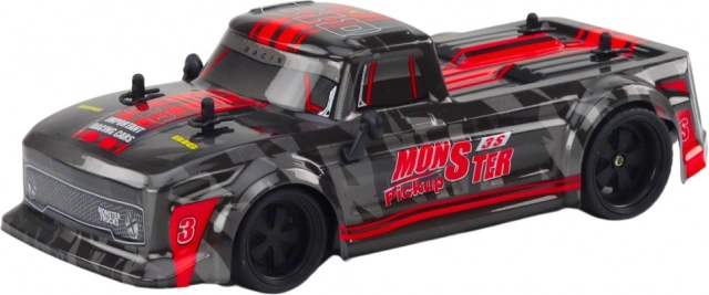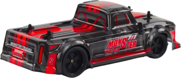 RC pick‑up u mjerilu 1:18 odličan je izbor za početnike i male zaljubljenike u utrke. Zahvaljujući gumenim gumama s izvrsnim prianjanjem snalazi se na glatkim i blago neravnim podlogama te ostaje stabilan i pri većim brzinama. Elegantno crno izdanje s crvenim akcentima naglašava sportski karakter modela.