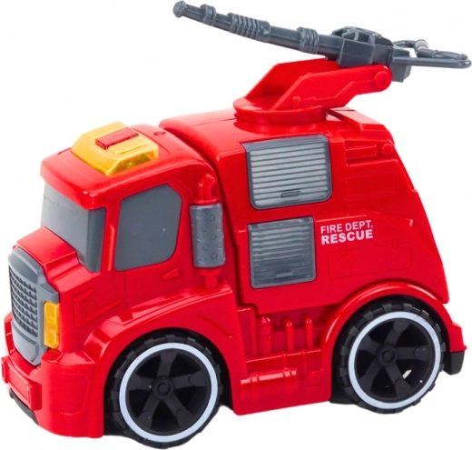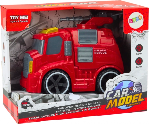 Na krovu vozila nalazi se pomični vodeni top koji se može okretati i usmjeravati, čime se simuliraju intervencije pri gašenju požara. Ova funkcija povećava dojam realizma i omogućuje djeci da se užive u ulogu pravih vatrogasaca. Vatrogasni kamion opremljen je zvučnim i svjetlosnim efektima koji reproduciraju stvarne zvukove vozila, poput zvuka sirene za uzbunu i motora. Svjetleća, trepereća svjetla dodaju igri autentičnost i uzbuđenje. Vozilo ima pogon, što znači da se pri potisku automatski kreće naprijed. Zahvaljujući toj funkciji djeca mogu gledati kako se vatrogasni kamion sam kreće, što povećava realističnost i privlačnost igre.Igra vatrogasca potiče kreativnost i maštu te omogućuje djeci stvaranje vlastitih scenarija spašavanja. Zvučni i svjetlosni efekti stimuliraju sluh i vid, čime podupiru razvoj osjetila.Kretanje vozila, upravljanje vodenim topom i rukovanje gumbima razvijaju manualne vještine i motoričku koordinaciju. Djeca upoznaju posao vatrogasaca, razvijaju empatiju i razumijevanje važnih društvenih uloga.Igračka vatrogasni kamion izvrstan je izbor za svako dijete koje fasciniraju spasilačke operacije i vatrogasna služba. Zahvaljujući realističnim zvučnim i svjetlosnim efektima, pomičnom topu na krovu i pogonu, kamion pruža svestranu i uzbudljivu zabavu. Nije samo izvor zabave, već i alat koji podupire razvoj djeteta na više razina. .