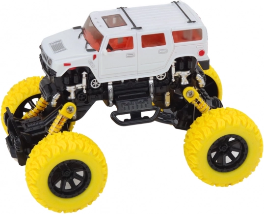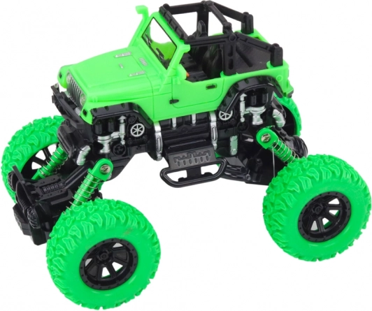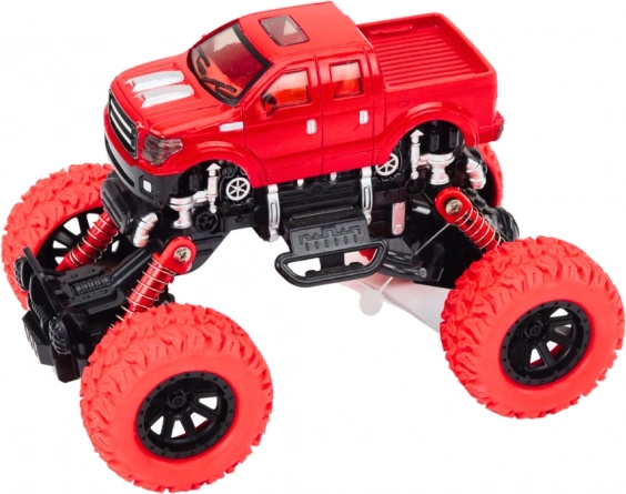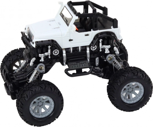 Terensko vozilo 4x4 dizajnirano je za dinamičnu igru u zahtjevnim uvjetima. Visoko, opružno ovješenje i veliki, profilirani kotači omogućuju lako prelazak preko prepreka, kamenčića i neravne podloge. Realistični detalji, poput odbojnika i bočnih elemenata, daju igrački izgled pravog off-road vozila.