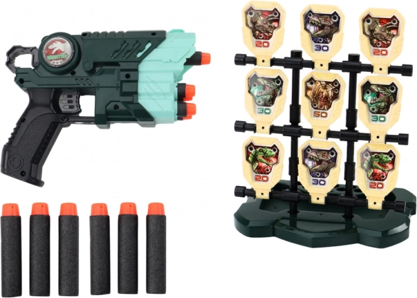 Streličarski set s motivom dinosaura, osmišljen za djecu, nudi jedinstveno iskustvo igre koje spaja zabavu i razvoj vještina. Set sadrži lagani i ergonomski pištolj koji omogućuje jednostavno rukovanje i manjim rukama.