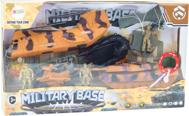 Vojni set idealna je igračka za male ljubitelje vojnika i avantura! Sadrži tenk, helikopter, padobranca i drugu opremu koja djeci omogućuje stvaranje realističnih vojnih scenarija s bogatim zvučnim i svjetlosnim efektima.