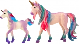 Očaravajući set dvaju jednoroga – odraslog i mladunčeta – u elegantnoj ljubičastoj boji oduševit će djecu i kolekcionare. Figurice od kvalitetne plastike imaju pažljivo izrađene detalje, realistične teksture i šarene grive i repove, zahvaljujući čemu su predivna dekoracija i inspiracija za kreativnu igru.
