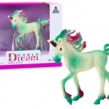 Ova mala figurica jednoroga ističe se magičnim zelenim izgledom te raznobojnom grivom i repom, koji stvaraju dojmljiv kontrast. Precizno oblikovani detalji daju figurici realističan karakter i čine je atraktivnim dodatkom dječjoj sobi i svakoj zbirci.