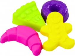 Četiri izrazito šarena kalupa u oblicima poput donuta, medenjaka i kroasana pretvaraju pješčanik u maštovitu pekarnicu.