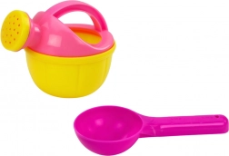 Šareni zalijevač olakšava vlaženje pijeska, a kompaktna lopatica odlično leži u dječjoj ruci za kopanje i prenošenje.